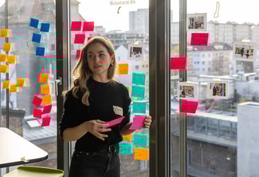 Design Thinking ist ein strukturierter Innovationsansatz, der Teams dabei unterstützt, Herausforderungen konsequent aus der Perspektive der Nutzer:innen bzw. Kund:innen (extern oder intern) zu betrachten. Bedürfnisse, Erwartungen und Erfahrungen der Zielgruppen stehen dabei im Mittelpunkt.